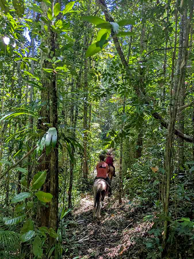 Estes longos circuitos ao redor da fazenda levam você para o coração da floresta primária e áreas arenosas livres de qualquer atividade humana muito propicias a galopes muito longos. Você vai sentir a verdadeira natureza das origens. O retorno se faz dentro da fazenda pelo Jungle Trail, uma viagem através da Mata Atlântica mais preservada da região cobrindo uma área de 25ha , reserva particular do Ecoranch incluindo o vale escondido do Cupuaçu.
