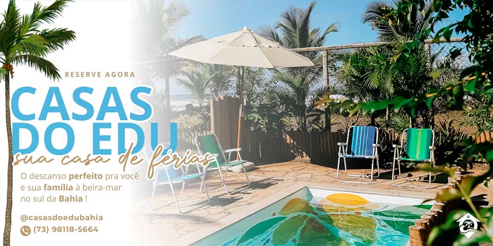 Venha curtir férias em família nas Casas do Edu! Casas condominiais de locação de temporada, pé na areia, de três suítes, com jardim, piscina e vagas privativas, com ar-condicionado Split em todos os cômodos, roupa de cama, banho e todas as demais comodidades para que desfrutem do paraíso das praias de Serra Grande em grande estilo!