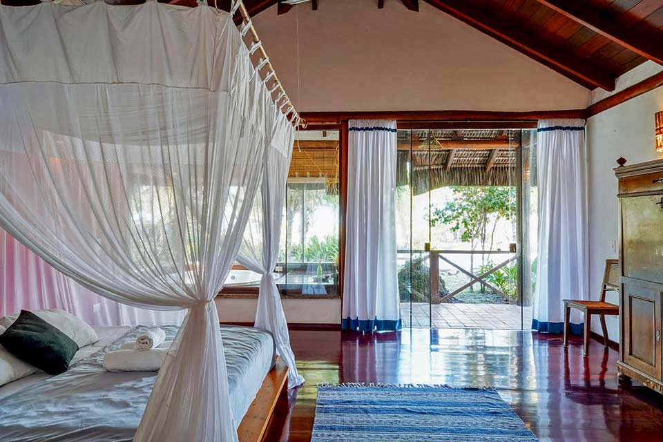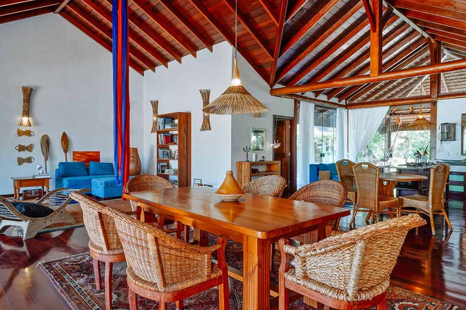 A Casa Sargi com área privativa de 5mil², 120m de frente mar, tem 4 suítes muito confortáveis, varandas vista mar e jardim, piscina, sauna, hidromassagem, banheira, cozinha externa gourmet, com roupas de cama 100% algodão alta qualidade, piso de madeira e muito espaço, está completíssima para seu conforto e bem estar.  Acomoda até 8 adultos. Oferece serviço de camareira e cozinheira.